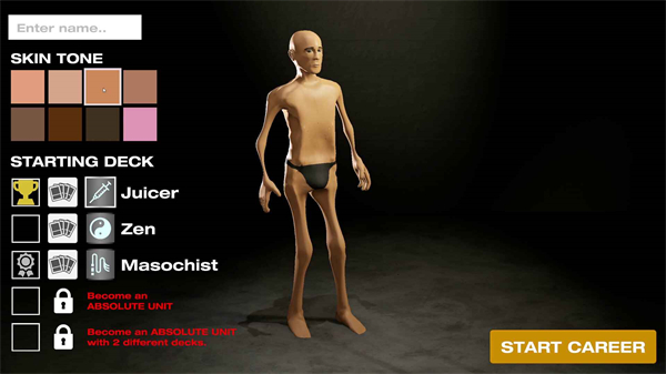 健身模拟器是一款模拟健身的冒险游戏。在这款游戏中你将扮演一名瘦弱的男人,你喜欢格斗但是永远打不过那些健硕的肌肉男,于是你开始了地狱般的魔鬼训练。在训练过程中你需要让自己不断地增加肌肉,有氧、无氧运动双管齐下,最后你会发现自己成为了真正的健身达人,此时再去挑战格斗吧