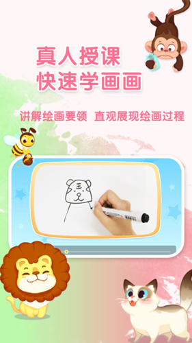 5、真人授课——每个作品都有专业老师讲解绘画要领,分解绘画步骤,直观展现绘画过程,让孩子快速学会画画