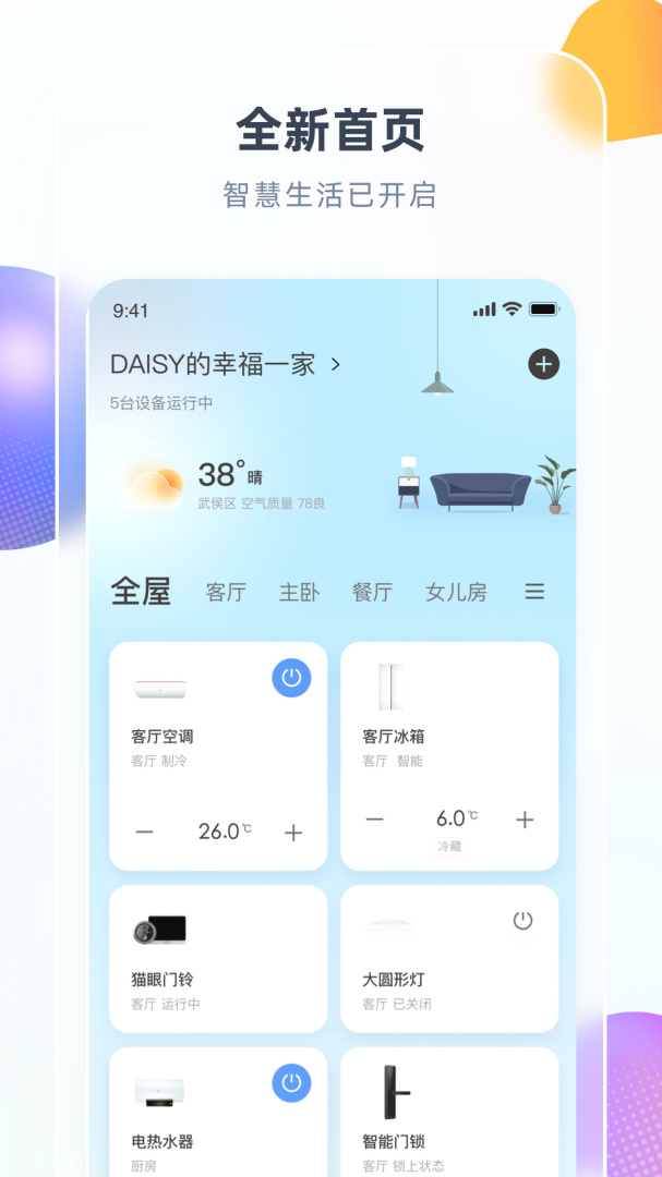 1.智能:提供以家庭分享,场景控制,设备的单点控制为核心功能的智能化和个性化服务,可使用户根据个人意愿一次性同时调节多台智能设备运营状态,同时保留了单个设备控制逻辑,操作选择性更广。