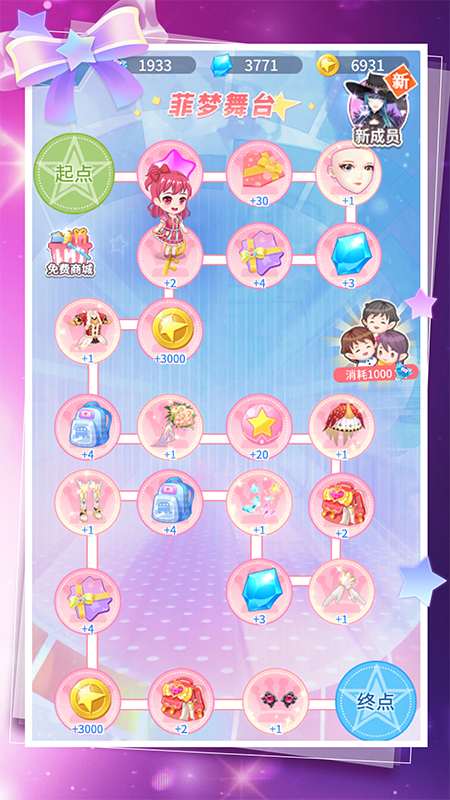 少女的偶像养成之路!菲梦助理为你准备了上百套绝美套装卡片,让你时刻都能有着华美而与众不同的装扮!努力完成偶像任务,从零做起,在偶像之路上一点点前行;挑战菲梦之星,专属的养成计划让你闪耀整个舞台!