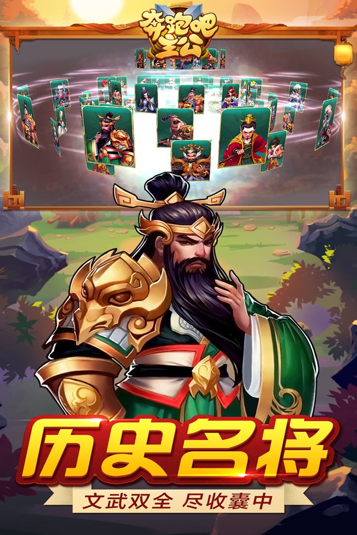 《奔跑吧主公》是一款卡牌手游,游戏名采用了当下比较火的综艺节目奔跑吧兄弟的名称方式,而游戏采用了精致的3D视觉,并且彻底解放双手,让玩家体验卡牌策略性。