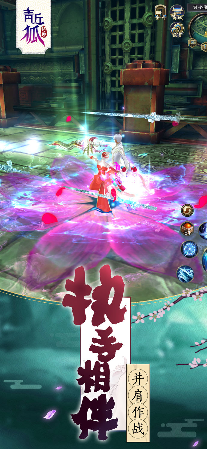 青丘狐传说是一款仙侠题材的手游,游戏采用唯美的国风画面设计,高清的游戏画面搭配优美的背景音乐,带给玩家身临其境般的体验,代入感极强,更有丰富的剧情故事,华丽炫酷的技能特效伴你左右,带你闯荡浪漫仙侠世界
