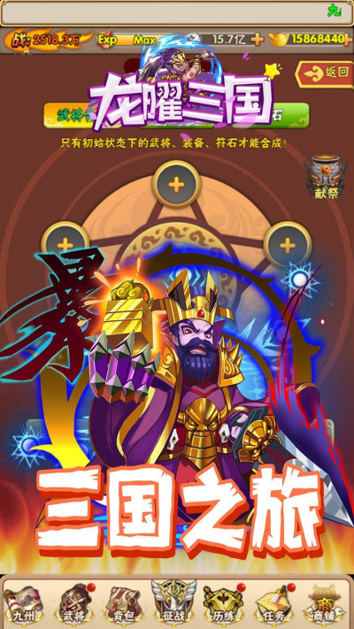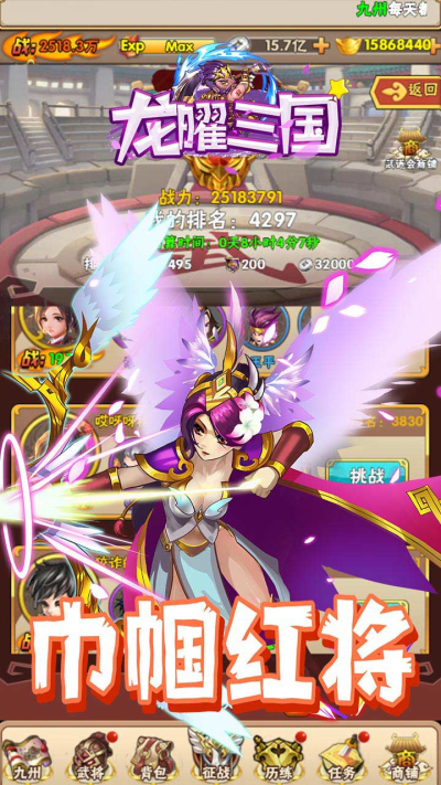 龙曜三国BT(满V送百抽)果盘版这款SLG+RPG的三国策略国战游戏,游戏在基于传统战争策略类游戏传统玩法的基础上,加入了主流的人物扮演元素,真实还原史诗级国战世界及百位武将人物人物等,知名画师制作,良心精美游戏界面,经典三国世界,全新国战称霸之旅!
