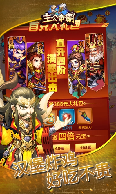 首充礼包霸气送天金神将吕布,次日送天金神凰套装,第三天送天金神将包,让你一飞冲天!
