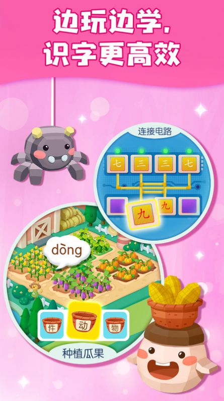 跟读汉字:语音引导孩子大声跟读,从小学习标准普通话。