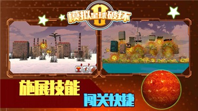 模拟星球破坏2是一款玩法简单的休闲解压游戏,各式各样的道具和破坏的物品都可以由玩家选择和冒险的竞技效果,这样的游戏魅力都将更加考验玩家能力的搭配考验,就是现在,挑战自己的极限,探索每一关带给你的惊喜