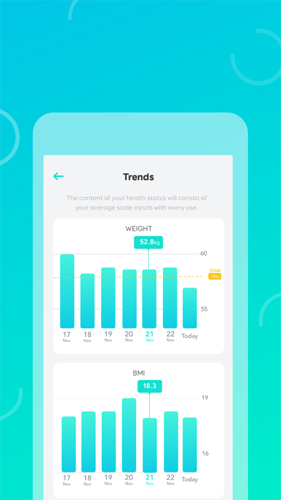 eufylife应用致力于改善你的健康。我们已经将技术和便利融入到一个易于使用的应用中,它可以自动同步你的健康数据。追踪12个测量值:体重,身体脂肪,体重指数,水,肌肉%,骨%,脂肪,内脏脂肪,瘦体质量,体脂质量,骨量,肌肉量