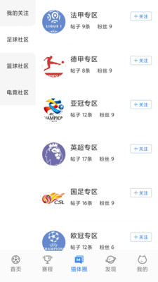 《猫体体育》是一款为用户带来很多体育信息的软件。如果你是一位热爱体育的朋友,喜欢看各种体育联赛,那就来看看这款猫体体育吧。软件为用户提供各种联赛信息,你可以找到自己喜欢的信息资讯。喜欢的朋友快来下载吧,快来了解自己喜欢的联赛吧