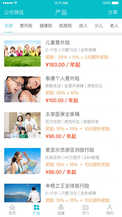 1、丰富的主打产品,包括健康险、意外险、航旅险等