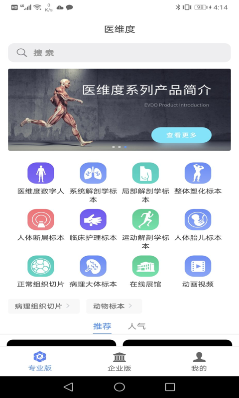 医维度,相当不错的医学类软件,用户在这里能对人体的结构构造有更好地了解,还有各种各样的人体标本提供,供你随时学习,让你可以更好地运用到医学领域,学医人士必备