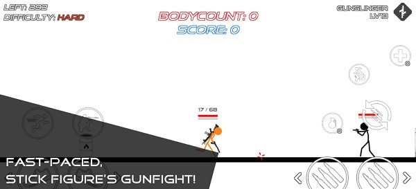 火柴人战争鲜血打击是一款游戏性较高的火柴人战斗类游戏,从开始的小手枪到最后的火箭筒,从开始的漫步前行到最后的快步奔跑,从开始的小心翼翼到后面的疯狂乱杀,这其中你到底经历了什么,超级刺激的减压射击游戏,你可以选择获取各种强力武器,可以暴爽的射击快感,快来和你的朋友一起试试吧