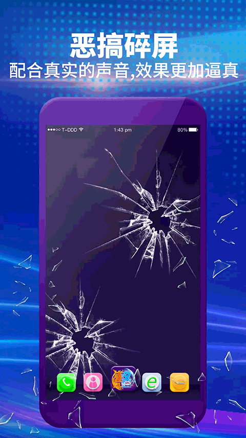 整人屏幕app应用提供比较温柔的整人方式:“闪电屏幕”、“击碎屏幕”、“死机屏幕”、“黑屏”。