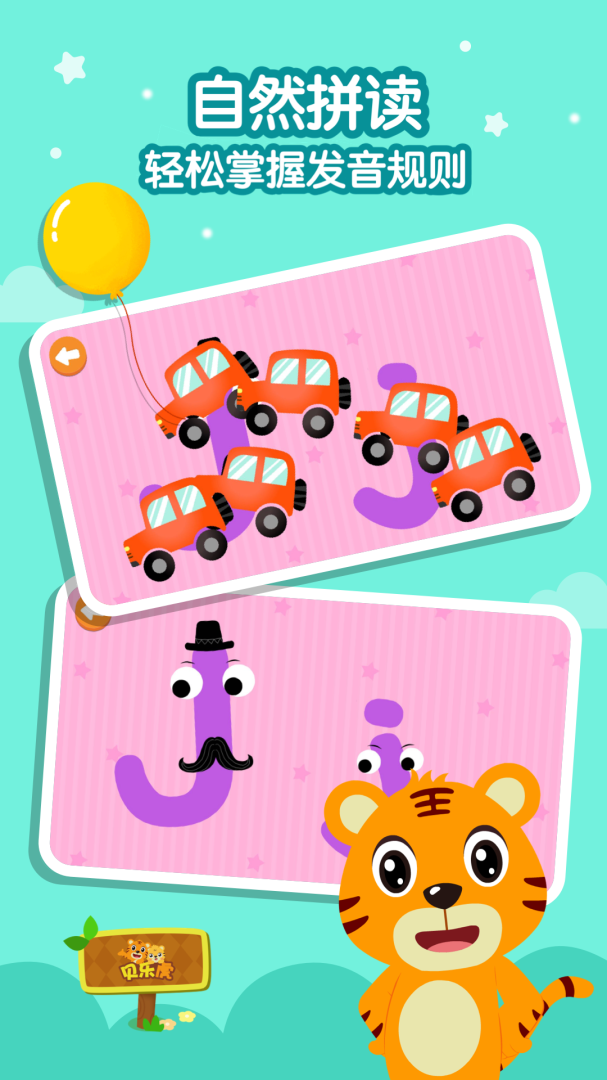 ”共有8大学习主题,每个主题又分为儿歌视频、单词认知、趣味游戏、翻转卡片、绘本阅读5个子关卡。由贝乐虎团队精心研发的一款儿童学习英语的APP。贝乐虎英语在内容设计上吸取了Hooked on Phonics、Reading A-Z、RAZ等多版经典英文教材的精华,模拟美国孩子学习英语的方式,从自然拼读、单词积累到阅读习惯的养成,用最直接有效的方式来学习掌握英语。此外还与趣味游戏创造性地结合,带给孩子沉浸式的学习体验。