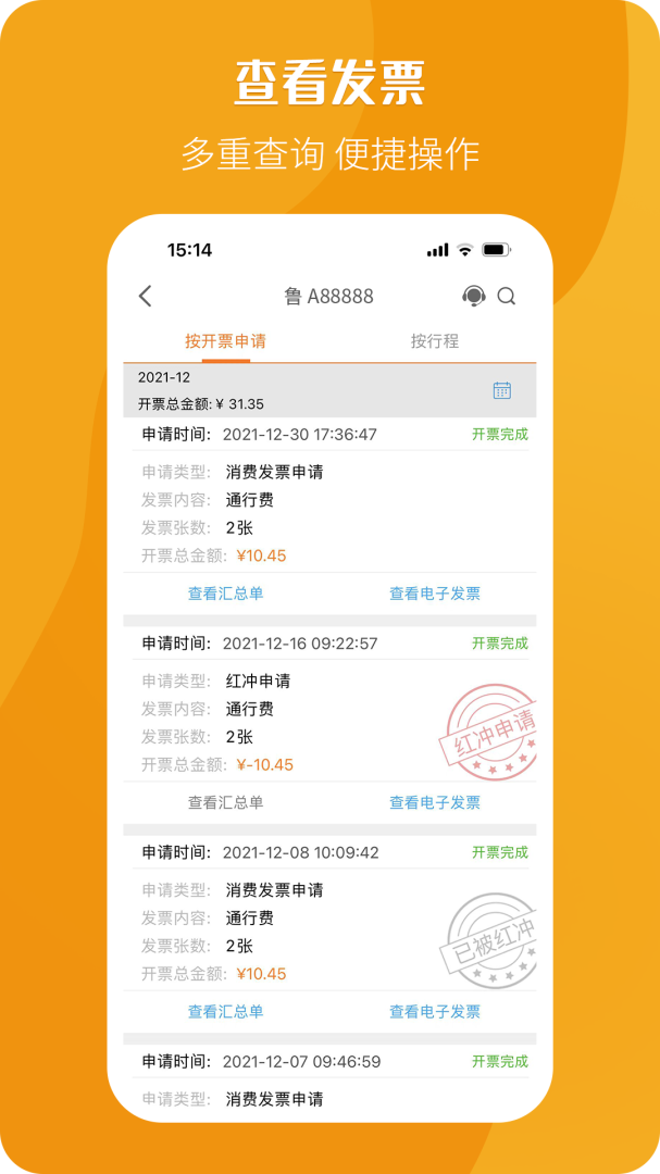 票根app是票根网的手机客户端,能够为大家提供ETC发票开具服务,平时使用ETC通行的朋友们可以下载使用哦。你可以在这里详细的查看你的ETC消费情况,对ETC消费了如指掌。还能一键将消费的发票打印出来,方便大家进行报销或者留作他用