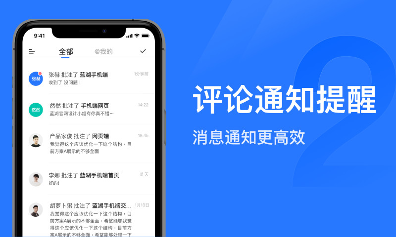 随时随地地查看高保真原型;查看、评论设计图等功能。