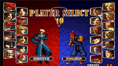 游戏角色包含了卡普空和SNK两大名公司人气角色共48名!像拳皇、街霸、侍魂、月华剑士、恶魔战士,甚至还有《快打旋风2》女主角MAKI首次在格斗游戏中亮相!而双方的经典隐藏人物暴走八神,暴走卢卡尔、杀意隆、真豪鬼也都可以直接选用!各角色保留了自身的独特风格,对战之前,或赢得比赛后所作出的经典动作,玩家在游戏中都能看到。在游戏中玩家可以选择与电脑对战,也可以选择玩家对战。游戏包含更多玩家可自选BOSS及隐藏人物。