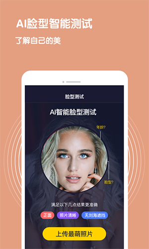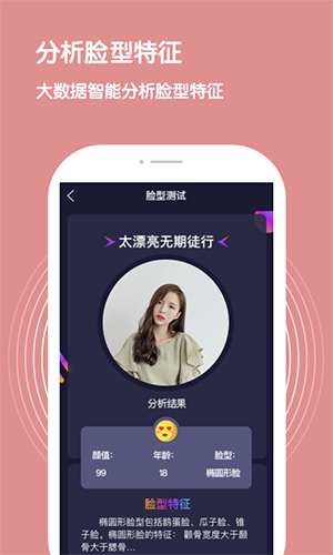 脸型测试下载,拥有强大智能的脸型识别分析功能,帮助用户了解自己的脸型特征,脸型测试还可以测颜值,提供脸型发型搭配等信息,了解一下