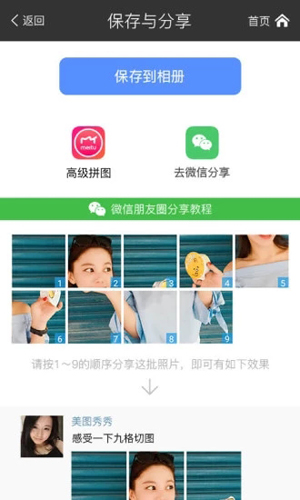 1.只需一点击,立刻生产九宫格美图,简单方便。
