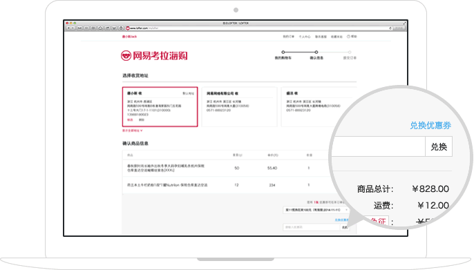 1、在订单确认页填写优惠券编码,点击兑换按钮。