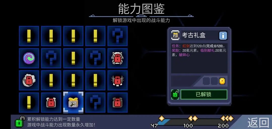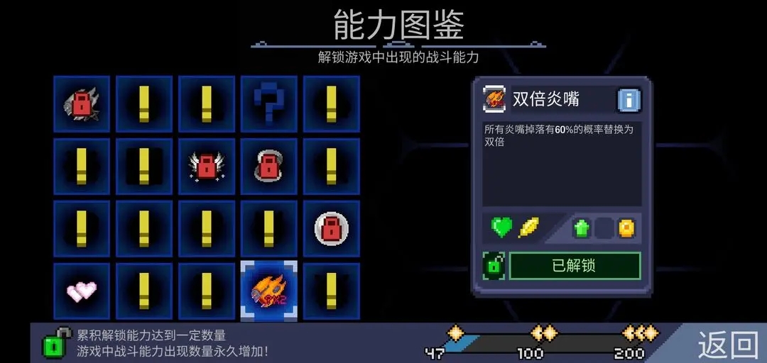 由于目前能力图鉴没有开关,如果你解锁的能力越多,想得到强力的能力就越困难,尤其是大家都喜欢的礼盒能力,有时候运气差一把都随不出来,所以我们前期优先解锁下面这些能力,这也是为什么本帖是萌新向的原因之一,老玩家基本能解锁的都解锁了。