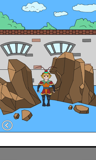第四关其实和第一关通关方法没有什么区别,同样是从右侧对联下拿到铁镐,之后进入右侧游戏界面后,先用铁镐把堵住墙壁裂缝的那个石头敲碎,然后,再把墙敲碎,就能进入学校了。