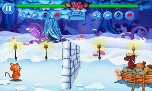 猫狗大战是一个非常有趣的战斗,猫狗大战讲述的是一只猫和一只狗之间互相投掷东西,你选择骨头,攻击头部,打败你的电脑对手或你的朋友.你可以选择一只猫或狗,你扔骨头,你的对手扔鱼刺等,并击倒对方.猫狗大战安装后,玩家即可体验猫狗大战带来的乐趣.