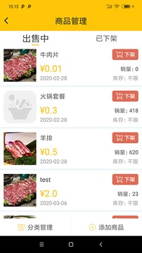 2、商家可自由编辑店内的菜单信息,如上架、下架以及发布优惠信息