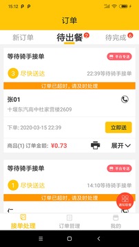 4、随时随地接单,处理催单,操作退单