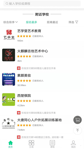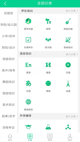 可以自由选择各种课程分类,支持线上报名参加课程;