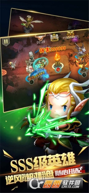 5、以西方魔幻色彩风格为题材,英雄激萌形象降临危机四伏的繁华大陆。祭司、精灵射手、独角兽、弩手、狮鹫、黑龙、十字军、蝎狮……英雄类型各司其职,天赋技能各有所长,找到最佳火力集中区,集攻防于一体,层层进阶,将伤害输出最大化,谱写魔幻史诗