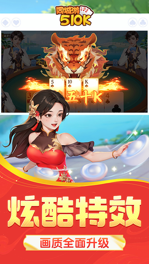 同城游五十k是非常经典的一个扑克玩法,但是受众范围比较小,了解的不多哦,市面上的可以玩五十K游戏的平台不多,而这款同城游五十k完全免费,无广告轻松畅玩,神速开局真人对战,玩起来的确很赞