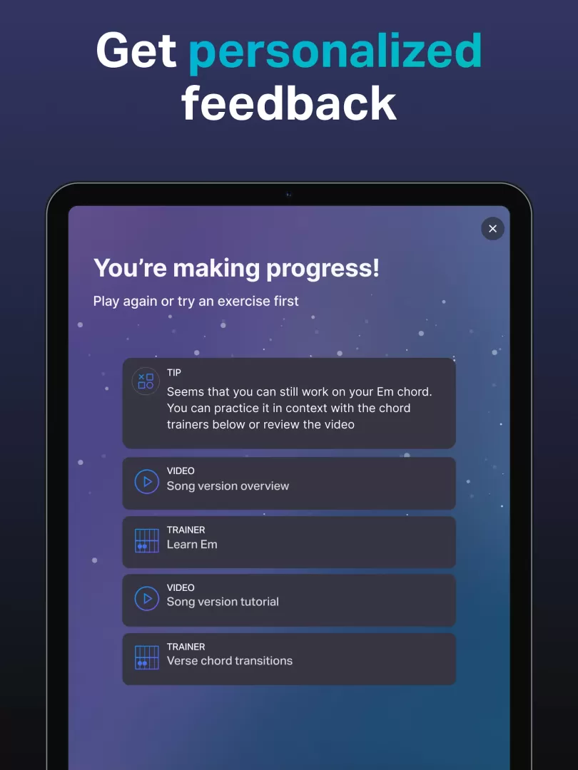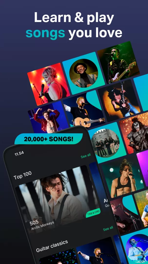 ? 改进您的和弦、即兴演奏、记谱子和听力技能,并提高学习速度,就像亲自上吉他课/班一样