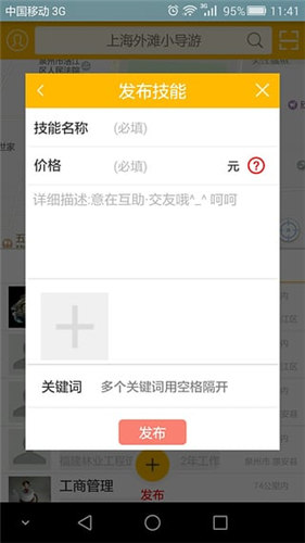 可以发布你的技能、特长、专业、爱好,来让别人获得帮助。
