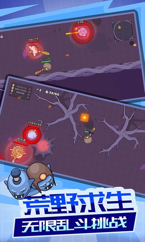 同样是现在非常常见的荒野求生题材游戏,这里的画面风格可以说是非常少见的了,玩家在这里控制着一个卡通风格的英雄,同时还是以的方式来进行游戏