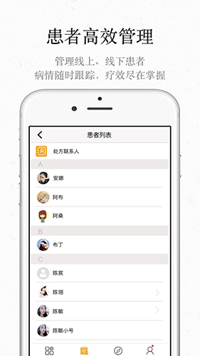 4、患者高效管理,管理线上,线下患者,病情随时跟踪,疗效尽在掌握