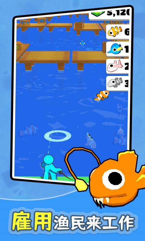 钓鱼小岛游戏:有效的管理我们自己的鱼塘,升级鱼塘,解锁各种小鱼,让越来越多的游客被我们吸引过来。我们也能够去雇佣渔民来帮助我们。升级鱼店的各项服务,让顾客有更好的体验,让他们爱上钓鱼,享受钓鱼的乐趣