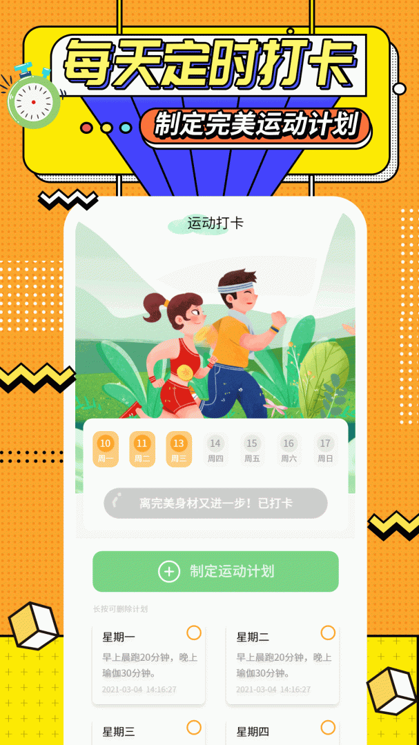 并不是你想的那种运动会上的计时软件,它更多的是帮助你进行锻炼和健身,保证你锻炼的时间能够很好的进行控制