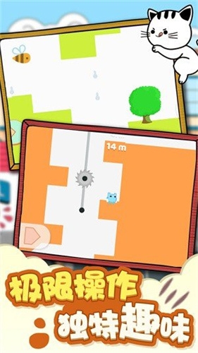 5、左右移动,轻松摇摆,通过有效的配合,帮助猫咪穿越各种机关