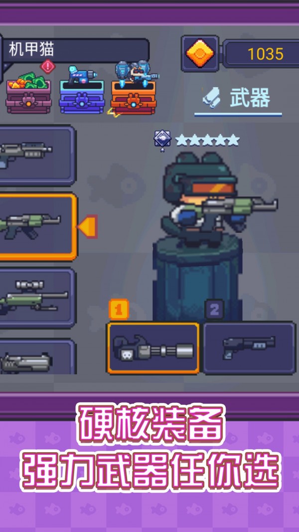 5、收集许多强大的枪支,猫英雄和支持设备来克服挑战