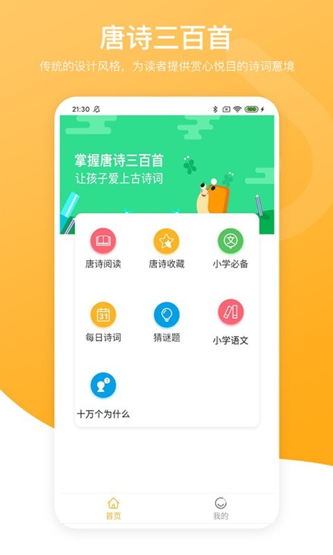 唐诗三百首收录了近百位诗人,共300多首唐诗,另外还有300首小学背诵的热门诗词,排版工整,可以分类查询阅读