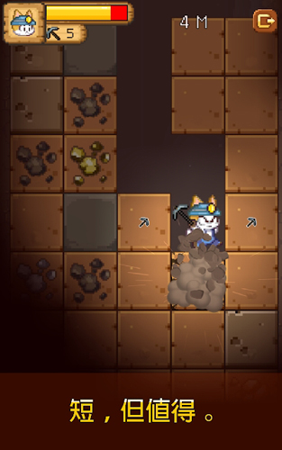 烟火开凿小猫是一款像素画面打造的冒险手游,玩家将控制可爱的猫咪完成各种挖矿工作,收集各种不同的宝贵矿物,还能用来升级你的工具与烟花,融入了非常好玩的锻造等元素