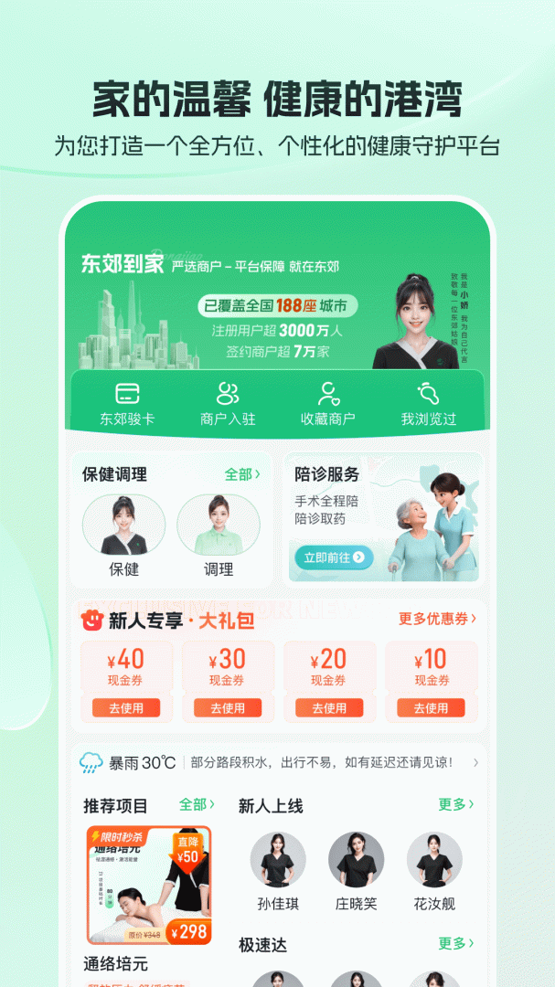 东郊到家是小编为大家分享的一款推拿上门服务的应用软件,平台拥有丰富专业的技师,资质齐全,用户可以一键预约,技师上门提供24小时推拿服务,安全放心,需要的朋友欢迎下载使用吧