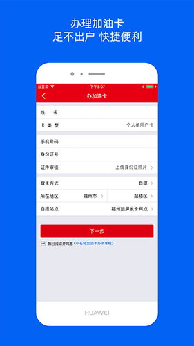 3)但是点击后不能进行绑定的操作,其实你只需要进行办加油卡,就会在办理的过程中,进行银行卡的绑定,这里的我的银行卡栏目主要是查看银行卡的!