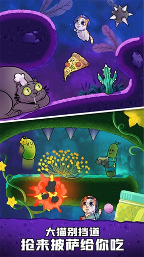 操作方法取消移动、跳跃、射击等按钮,模拟物理特性,配合发射火箭产生的后坐力,为猫咪提供前进动力。呆萌而又猖狂的猫咪,便宜的粑粑鸽子精,有趣的黄瓜星球...... 心动不如行动,更多精彩等你来亲自探索。