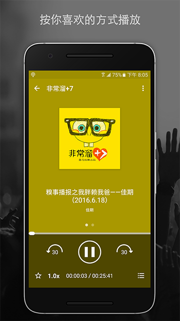 《播客》可以说是一款电台软件,也可以说是音乐播放器,还可以说是收音机,反正他就是一个全面的播放软件,只要是能播放的东西,在它上面都能找得到,新闻、资讯也可以听,说书、小品也具备,只有你想不到的,没有早播客上面找不到的