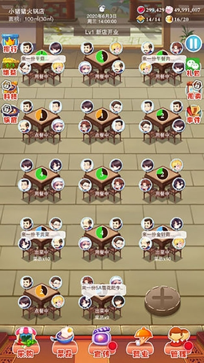 1、智能采购:建议多参照最大点菜数和解锁的菜品数,避免过量采购。可适当在智能的基础上减少几个单位,这样降低了成本还保住了收益。