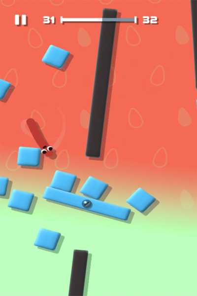 2、你可以用手指来滑动屏幕,按压屏幕来让香肠飞出去,黏住障碍物;