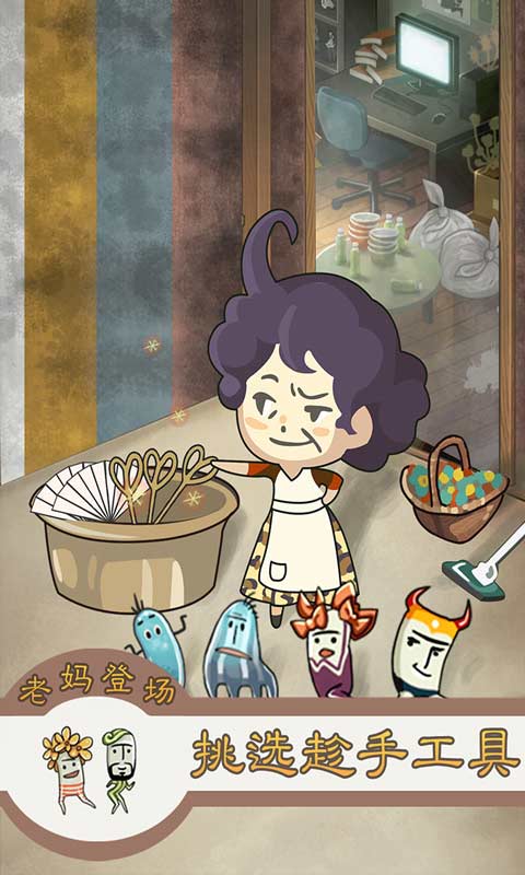《极度爆怒老妈物语》是一款让人非常想工作的休闲放置类手游。游戏以一个普通家庭为视角,描写了坚决与不工作的儿子奋斗到底的老妈的故事。游戏中玩家需要扮演老妈,去清除儿子房间中的懒人菌,每击败一个懒人菌就会获得“魂”,魂可以用来提升武器的威力,来一起见证最后的结局吧~