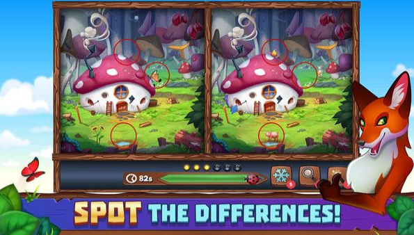 当您发现差异并克服差异时,您的观察能力将会提高,找到屏幕上两个图像之间的差异,然后单击任一图像来标记差异。