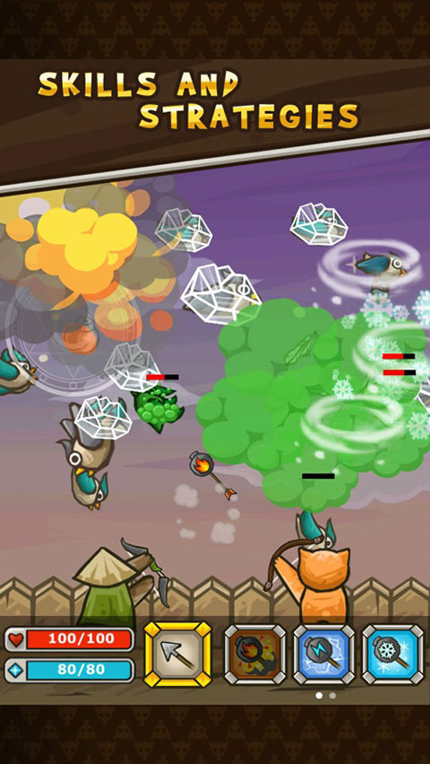 猫射手游戏是一款以神射手养成的童话色彩风为题材的手机游戏,游戏中猫扮演的是一个射手,而鸟则是侵犯家园的敌人,如何打败它呢,使用点击式来控制技能来进行射击哦,玩法十分有趣